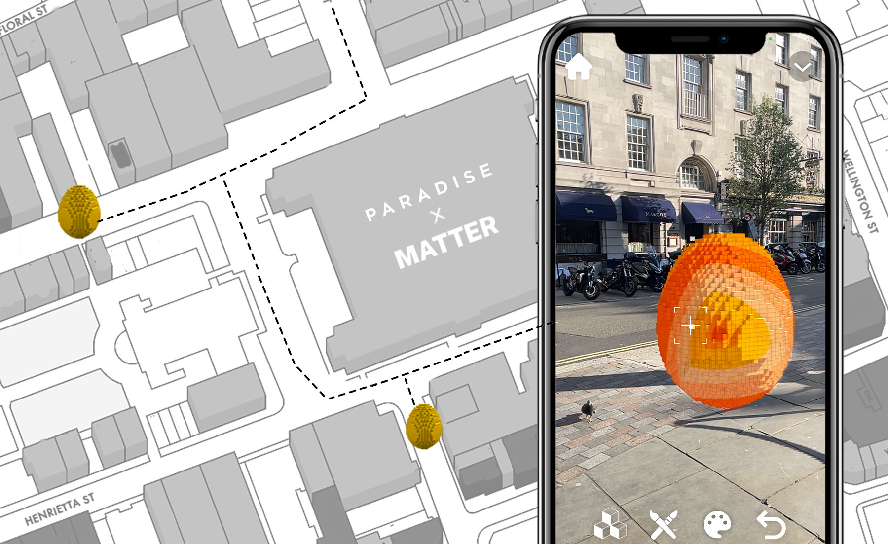 We partnered with our friends at Hot Dark Matter to create a virtual AR Easter egg hunt in Covent Garden for the Paradise team. The app allowed participants to explore the area and uncover hidden digital Easter eggs that could be redeemed at the pub for a pint!